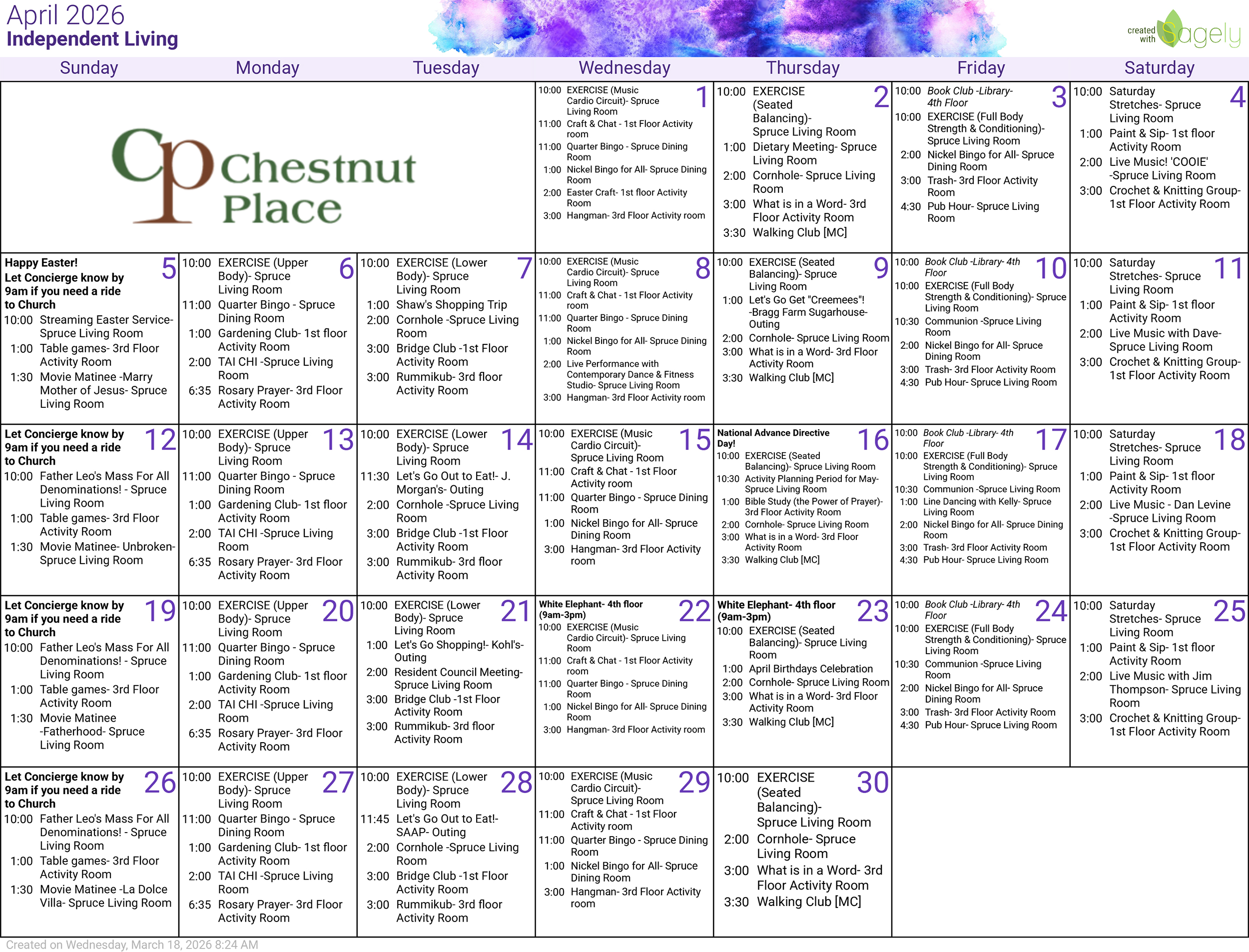 Independent Living Events at Chestnut Place